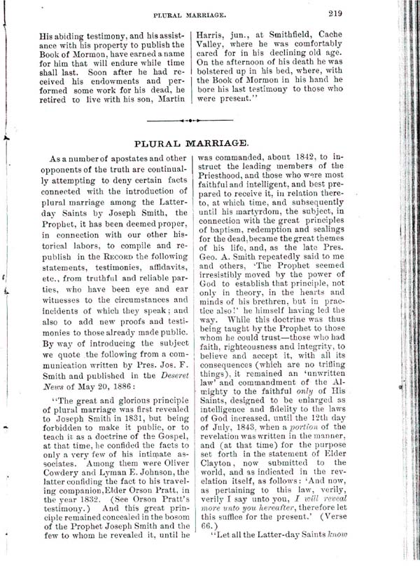 Andrew Jenson's 1887 article, "Plural Marriage"